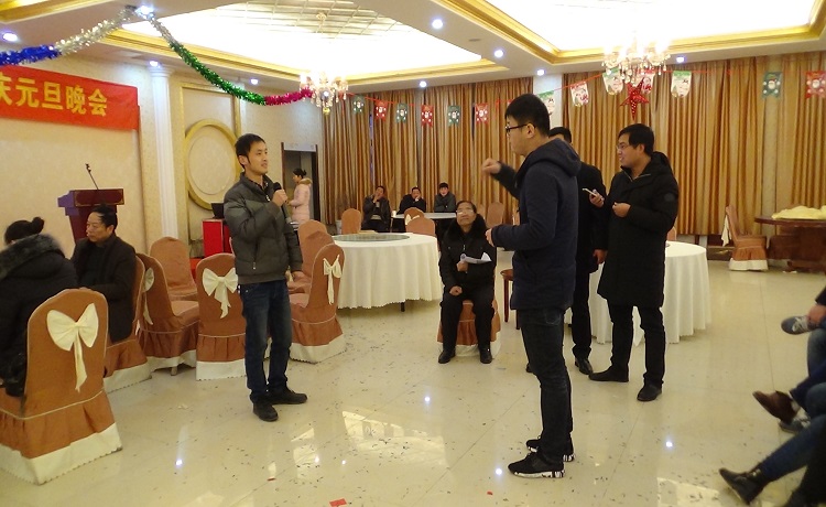 •        為迎接新年到來(lái),公司組織全體員工舉辦新年迎春酒會(huì)。院長(zhǎng)胡立軍同志先作了熱情洋溢的講話,公司一百余人參加。全體員工在摜蛋游戲、愛(ài)的抱抱、搶板凳中充分提升了集體團(tuán)隊(duì)團(tuán)結(jié)攜作精神,增強(qiáng)了大家的歸屬感。在大家相訴衷腸、共敘友誼的同時(shí),公司請(qǐng)來(lái)民間藝術(shù)團(tuán)為大家表演 。