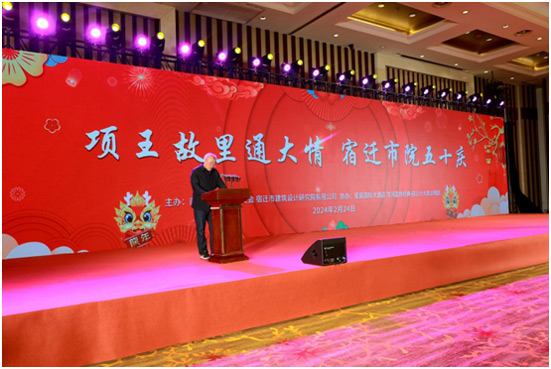 • 2024年2月4日,農(nóng)歷正月十五(元宵節(jié)),我院舉辦宿遷市建筑設計研究院五十周年慶典活動。湖濱新區(qū)黨工委副書記、管委會主任陳磊出席活動并致辭,活動由我院董事長兼院長胡立軍主持。